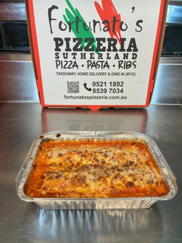 Spinach & ricotta filled cannelloni baked with Napolitana sauce & mozzarella cheese